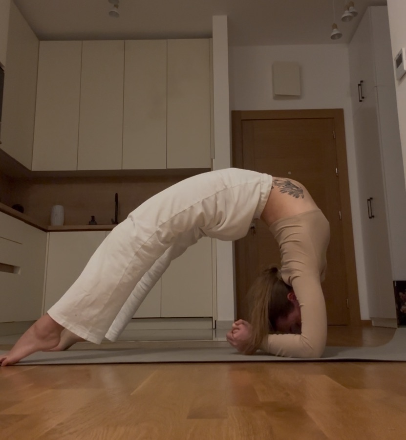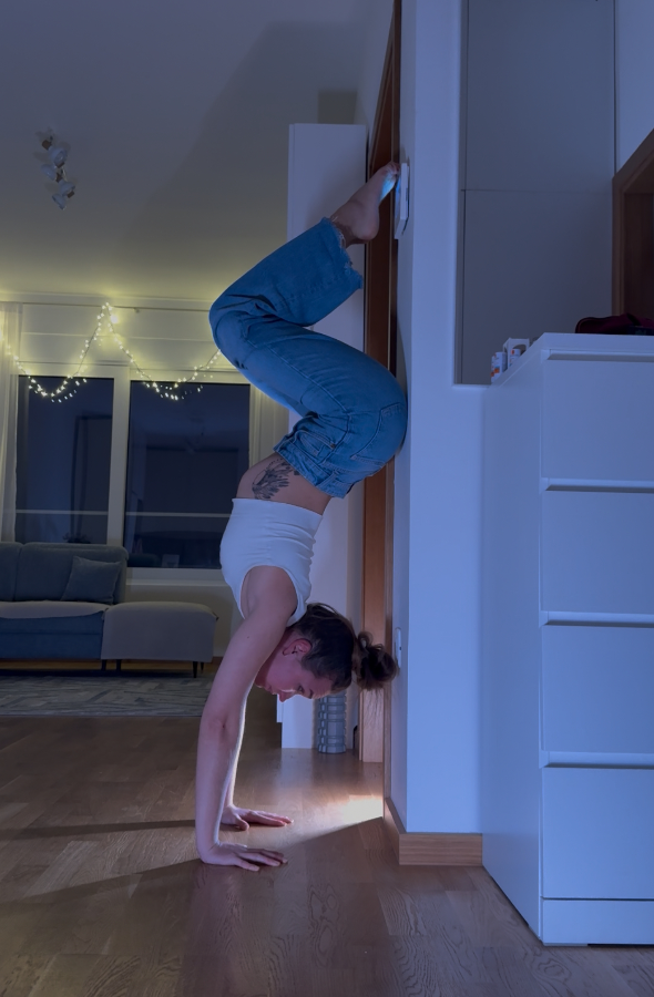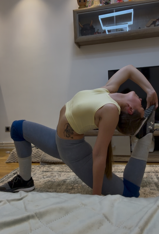На тренировках мы укрепляем плечи, спину, корпус и ноги, улучшаем осанку, развиваем силу, выносливость и готовим тело к более сложным элементам и акробатике.